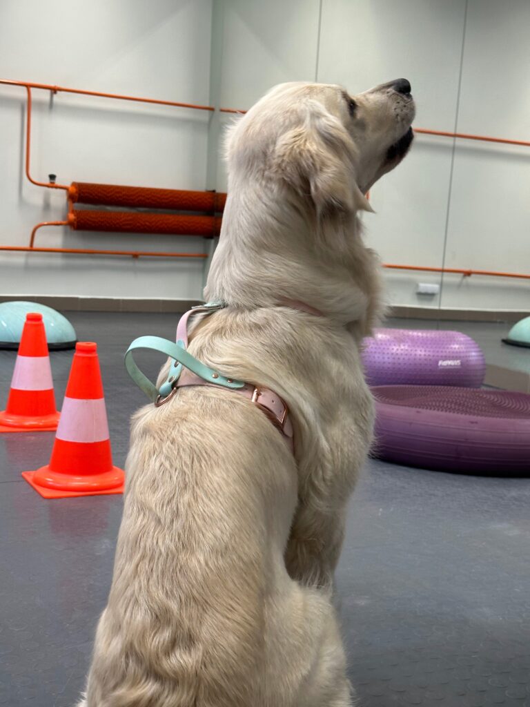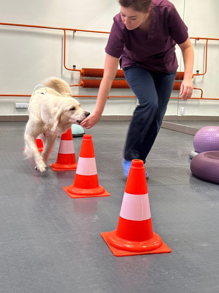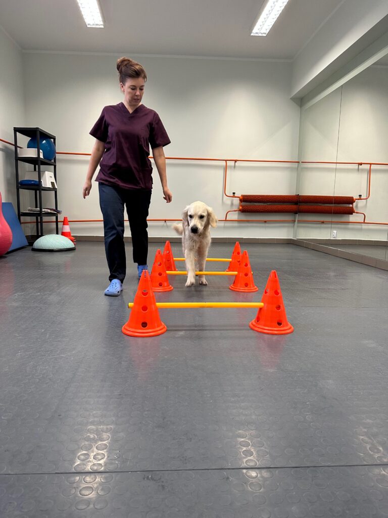 W naszym centrum rehabilitacyjnym znajduje się sala treningowa dla psów o powierzchni ok. 40 m2.